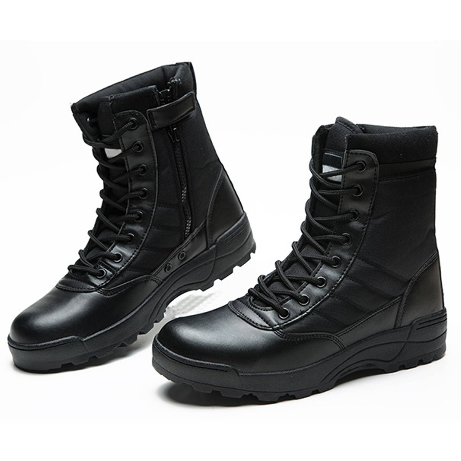 This Black Tactical Side Zip Boots are made of PU materials with a dynamic design.Featuring a side zipper for easy on-and-off access, they provide a snug fit. The slip-resistant and wear-resistant rubber outsole offers strong traction, ensuring stability on different surfaces. Breathable fabric enhances comfort during extended wear, while the high-elastic cushioning provides support for your feet. Ideal for outdoor adventures, tactical operations, or daily wear.