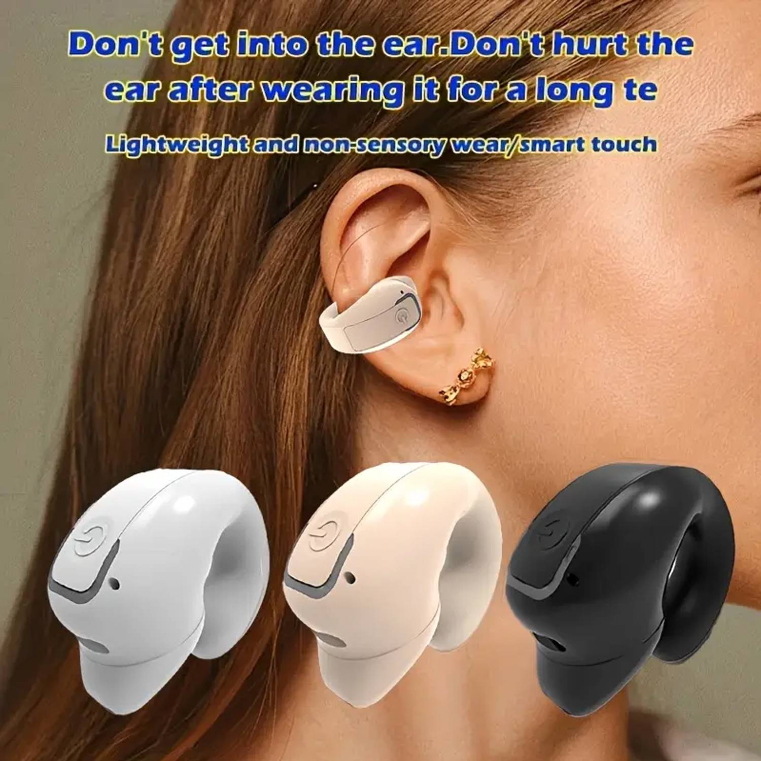 Mini Bluetooth ear hook earbud with noise cancellation, secure fit, voice control, perfect for sports, business, and daily use.