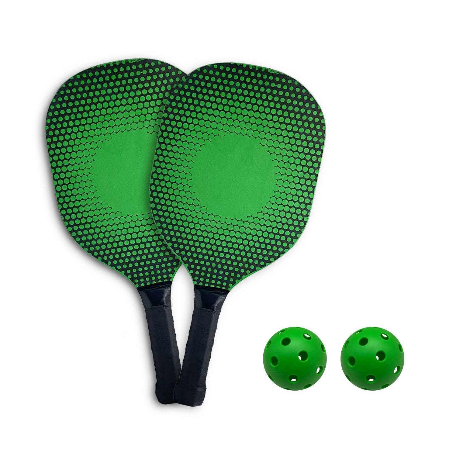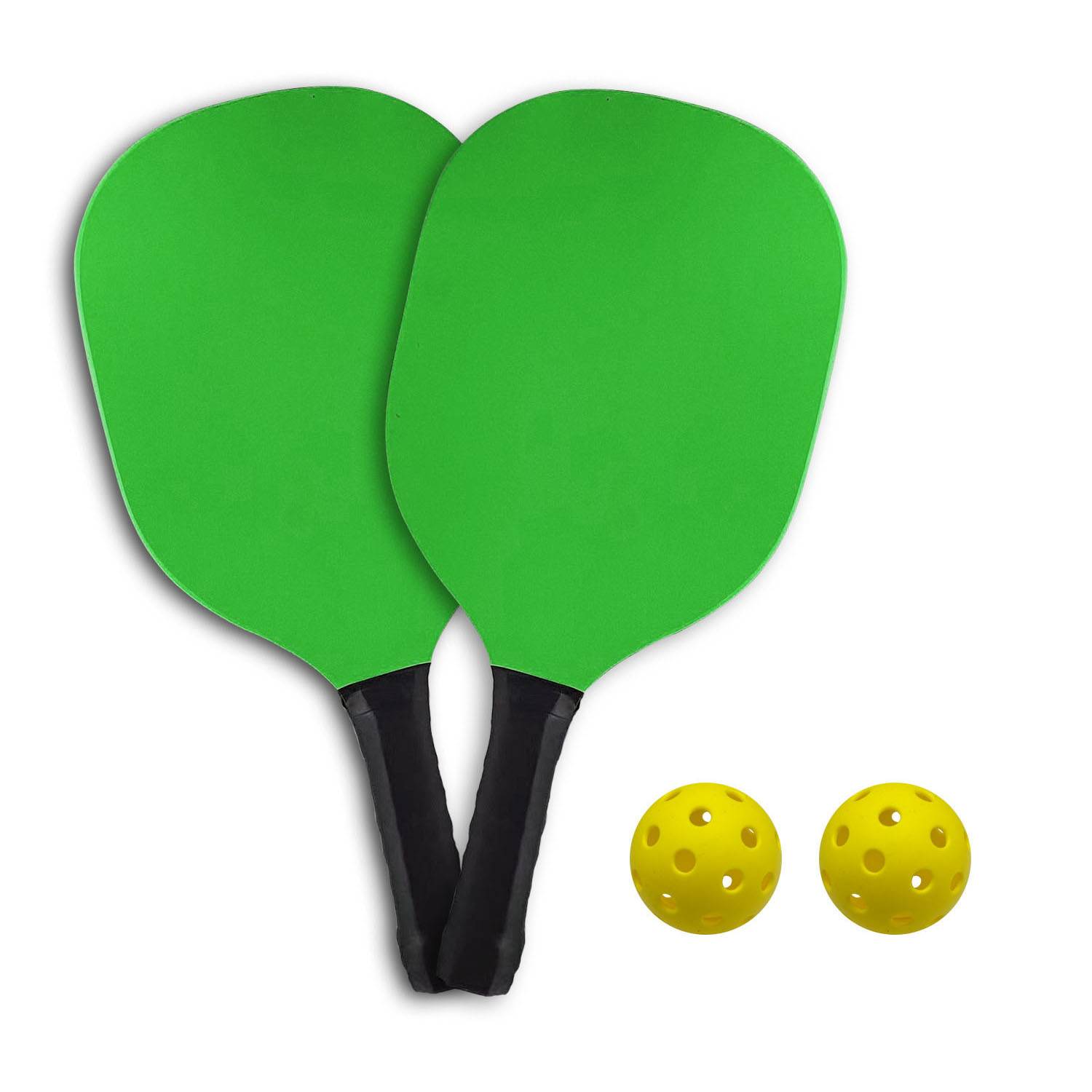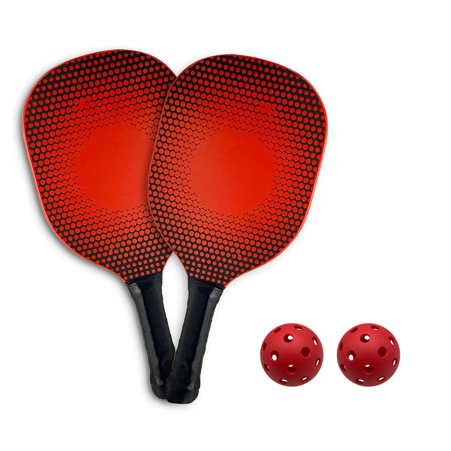 This Wood Pickleball Set is perfect for beginners and family fun.The paddles feature a sturdy plywood construction with a soft comfort grip that absorbs vibration,reducing hand fatigue.Each paddle has a plastic edge guard to prevent chipping and ensure durability . The set includes 2 regulation-size paddles, 2 outdoor balls, and a convenient carry bag for easy transport to the park, garden, or beach.Made from wood,this set is a great choice for outdoor sports,family parties,community activities.
