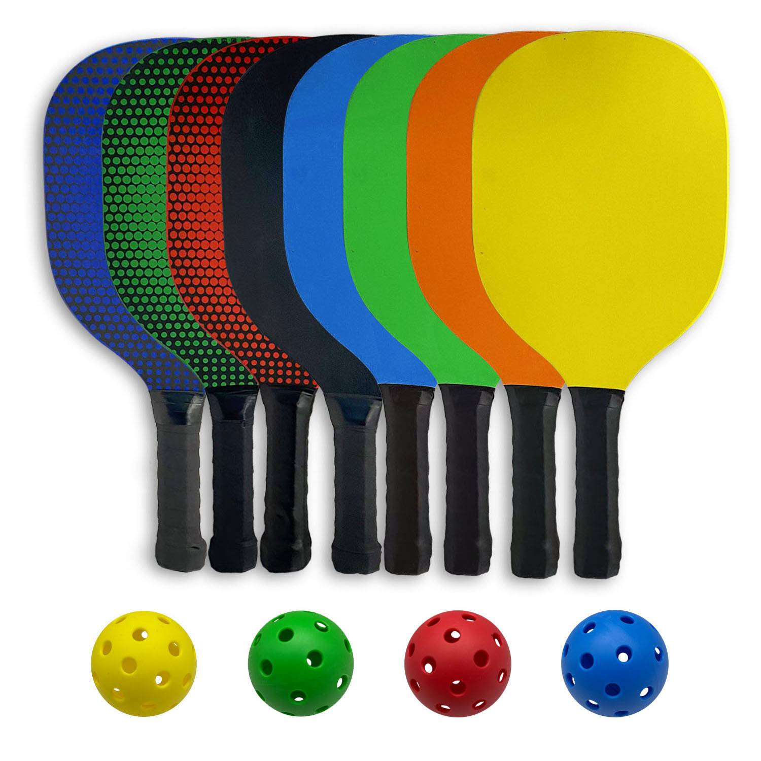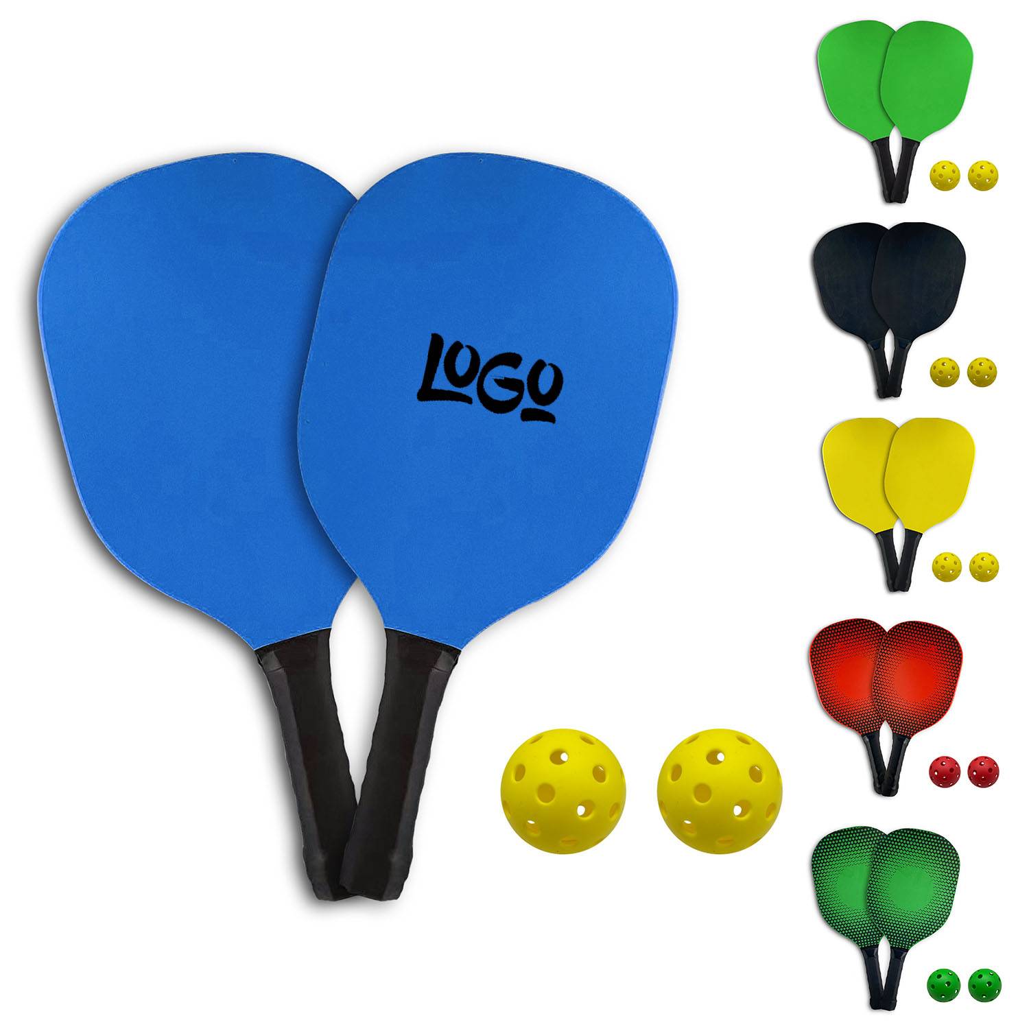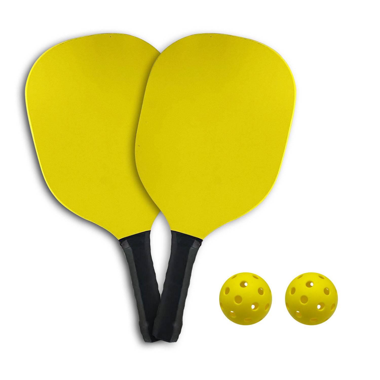 Complete wood pickleball set for beginners. Includes 2 paddles, 4 balls, bag. Durable, comfortable grip.